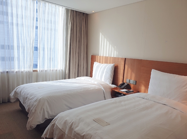 그냥 빠지겠지 싶어서 문 열고 환기를 시켰는데도 안빠지더라구용ㅜ그리고 침대가 다른 호텔에 비해서 딱딱했어용..먼지도 얼마나 많은지 제 몸에 두드러기가 났어용..ㅜㅜ직원들은 너무 친절하시고 좋은데 4성급 치고 너무 별로였습니다