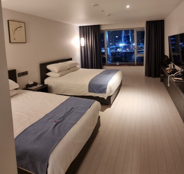 평소 잠자리 바뀌면 못 자는데 침대 매트리스 베개 쿠션이 너무 좋아 꿀잠 잤습니다. 바람이 불어 추웠는데 따뜻한 물이 나와서 수영하기도 좋았어요 단..물에 검정 고무같은 게 떠다니는게 많이 목격되어 불쾌했지만 대교가 눈앞에 딱 보여 뷰가 너무 좋았어요. 치약 칫솔 면도기 제공되지 않아서 2층 편의점에서 구매했습니다