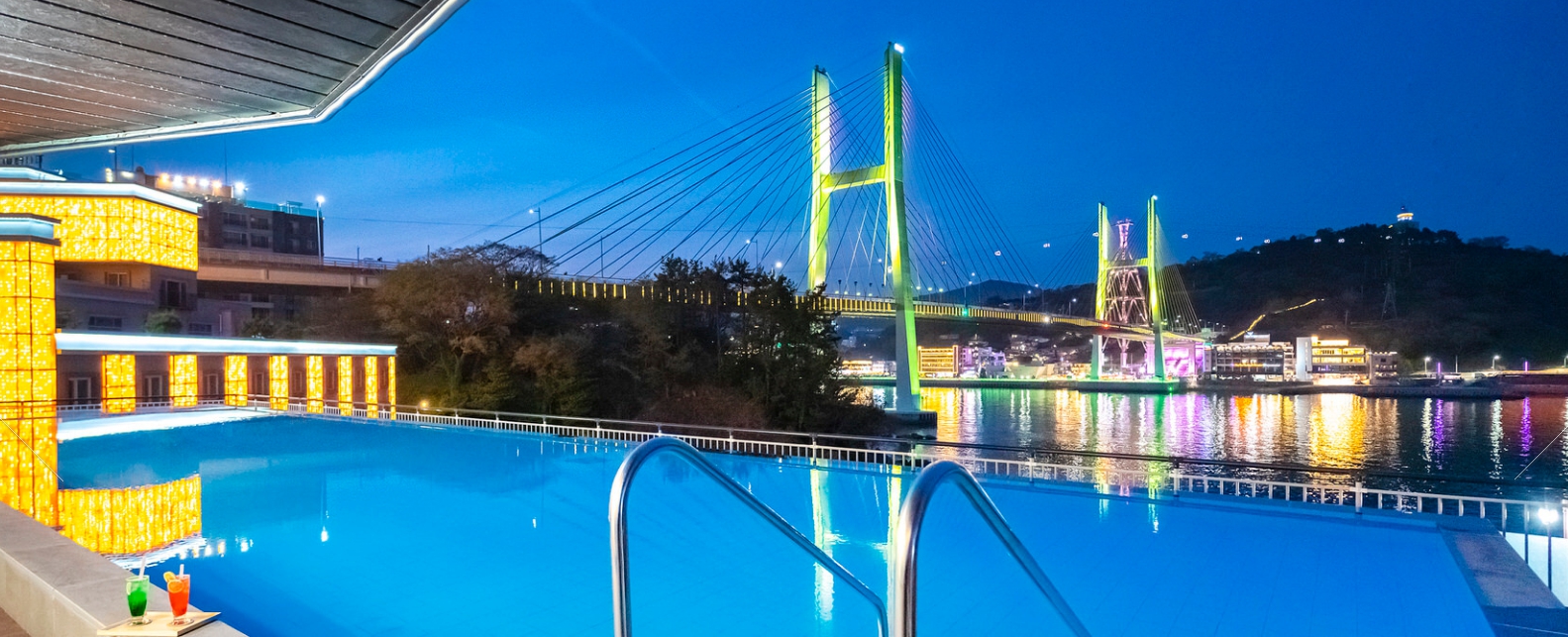 여수 돌산 거북선 대교 옆 지하 1층, 지상 12층 규모로 170개의 객실과 레스토랑 및 고객 편의시설을 갖추어 여수 밤바다의 야경과 함께 아름다운 추억을 만들 수 있는 최고의 위치에 자리잡고 있습니다.