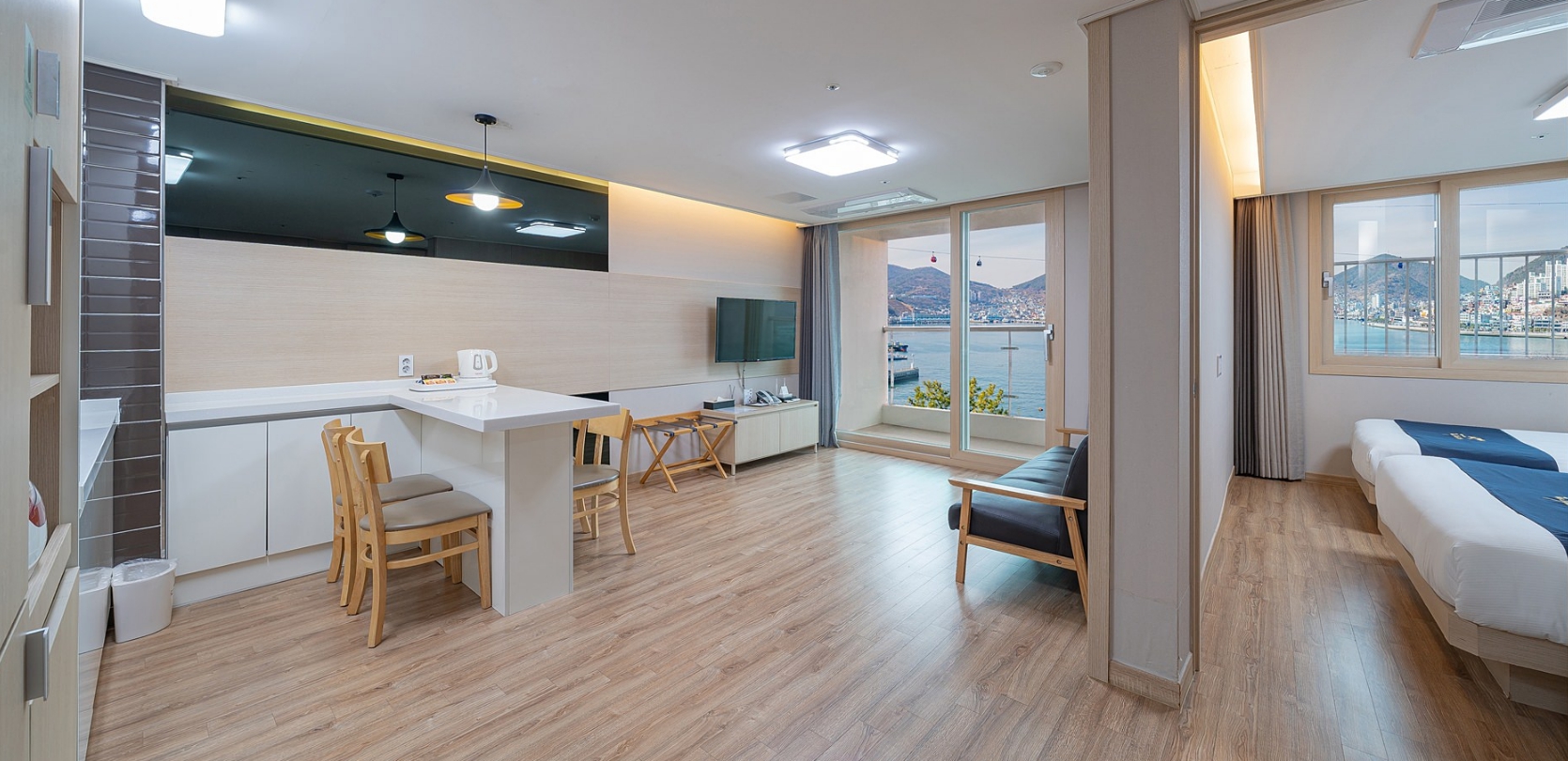 방에 보면 싱크대에 설거지 꼭 해놓으라는 안내문 있지만 주방세제가 없어. 어차피 식기도 컵밖에 없긴합니다 호텔이면 어느정도 기본 어메니티는 있어야하는데 환경을 위해서 안가져다 놓는다고 하나도 없어요...그래 뭐 환경을 위해서고, 챙겨 갔으니까..수건도 더 요구하면 돈 내야합니다. 받은 돈은 기부금으로 쓰인다는데고는 해요..그리고 룸체인지 받아서 윗층으로 갔는데 바다가 잘보여서 좋았는데 전반적인 서비스는 아쉬웠어요.