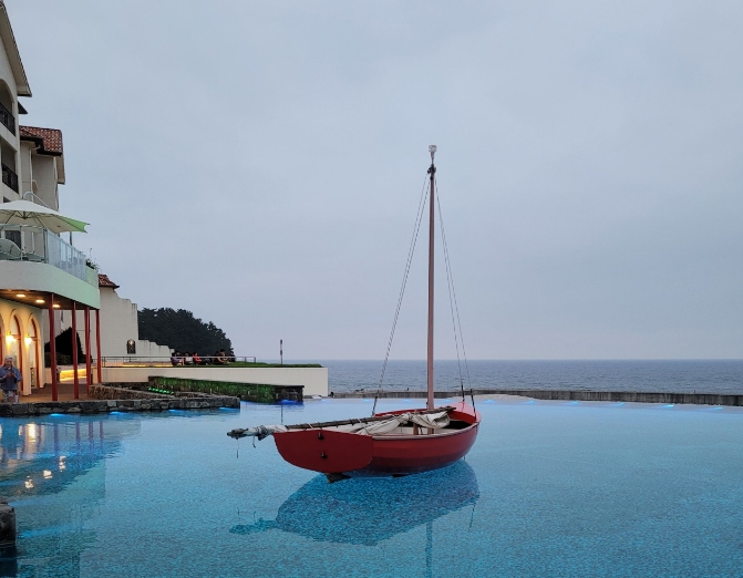 그래도 룸컨디션도 만족스러웠고, 확트인 오션뷰, 실내수영장과 프라이빗 해변이 이어져 있어 마음에 들고 이틀동안 수영장 이용하며 아이와 즐겁게 물놀이 했어요~주말이라 광장에서 버스킹 노래소리도 기분좋게 울려퍼졌고, 음악들으며 밤공기 선선하게 바베큐 먹고 아이들은 광장 뛰놀며 휴양 그자체 였어요 바로 앞에 사랑대게 가까워서 대게파티도 하고 좋았습니다