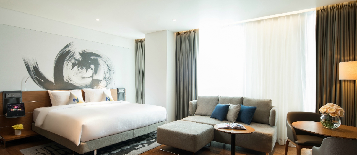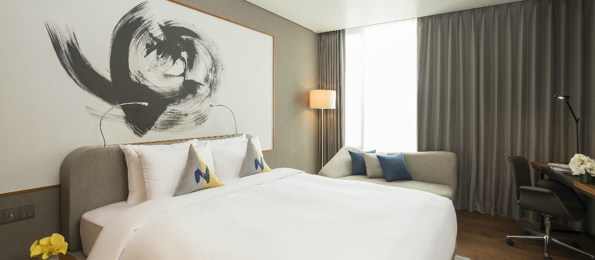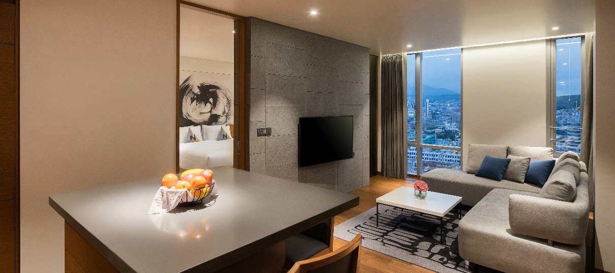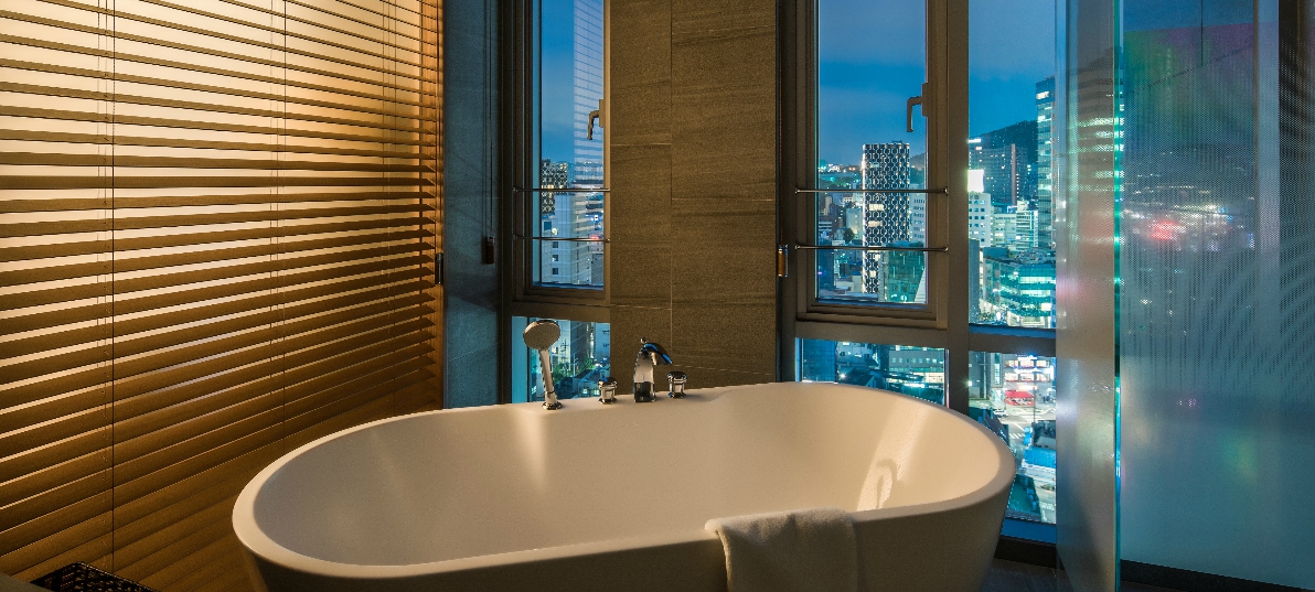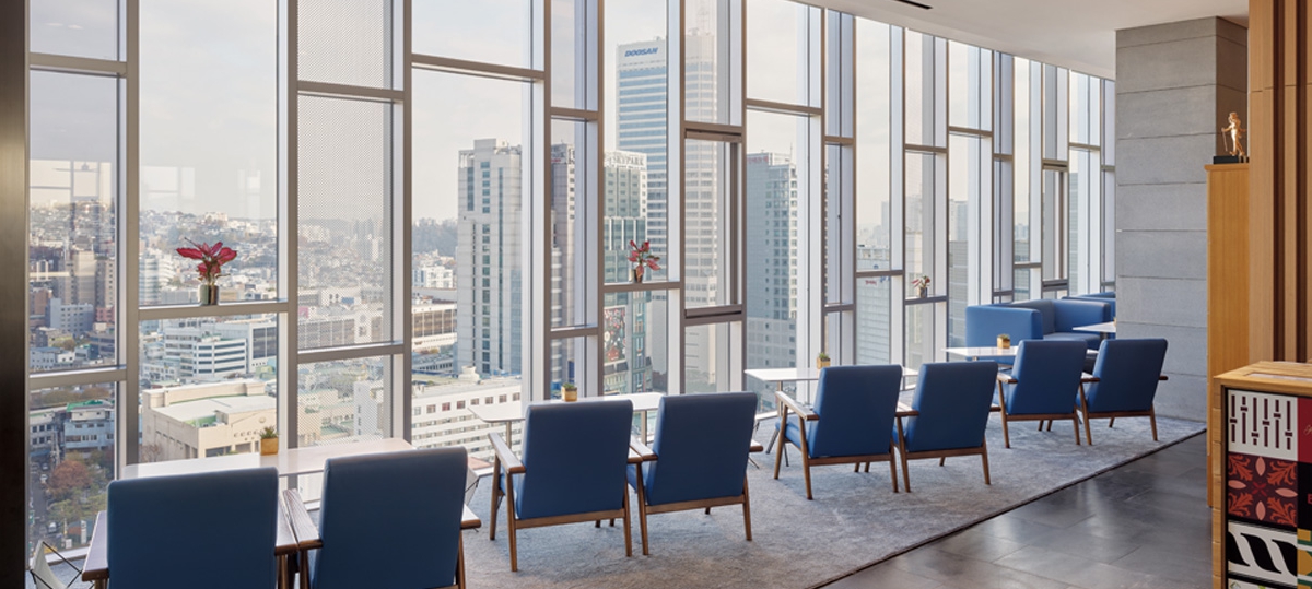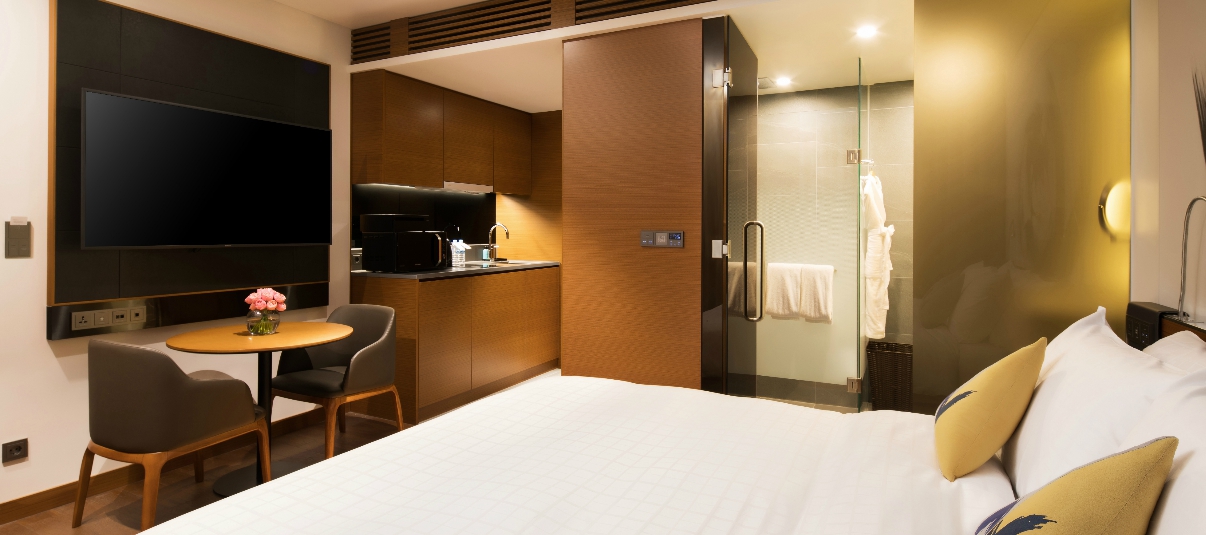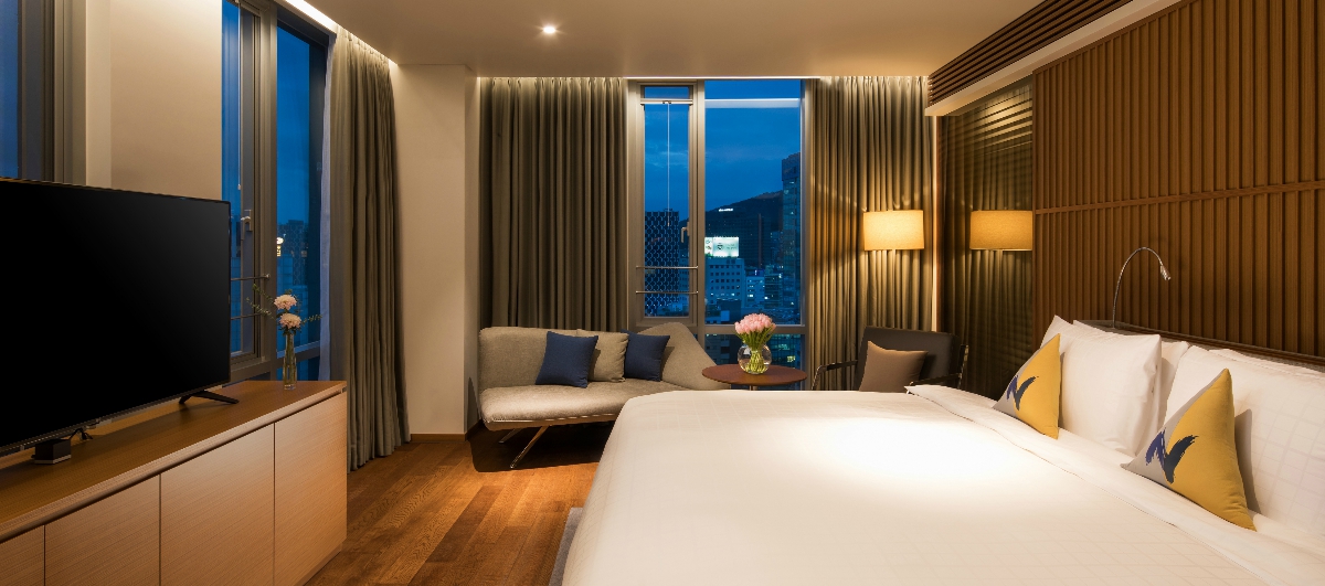 흥인지문의 처마를 모티브로 모던하고 안락한 인테리어가 돋보이는 객실과 편의 주방시설이 있는 객실이 있습니다