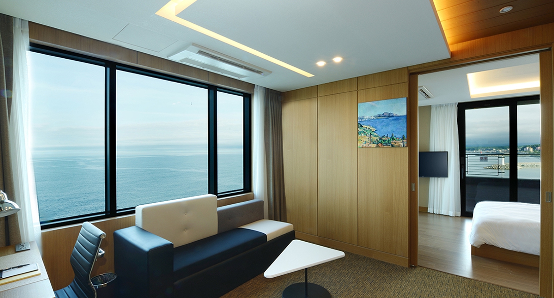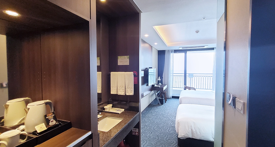 고층으로 올라갈수록 마치 절벽에 있는 듯한 뷰를 볼 수 있고 객실이 청결해서 가성비 괜찮은 것 같습니다. 무엇보다 객실 침대에서 해 뜨는 걸 볼 수 있는 게 가장 큰 장점이라면 장점이고요, 게다가 바로 바닷가여서 시야에 걸리는 게 없어 좋았네요. 4성급답게 객실 시설은 깔끔하고 좋았고요