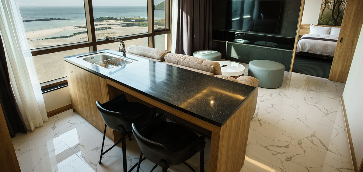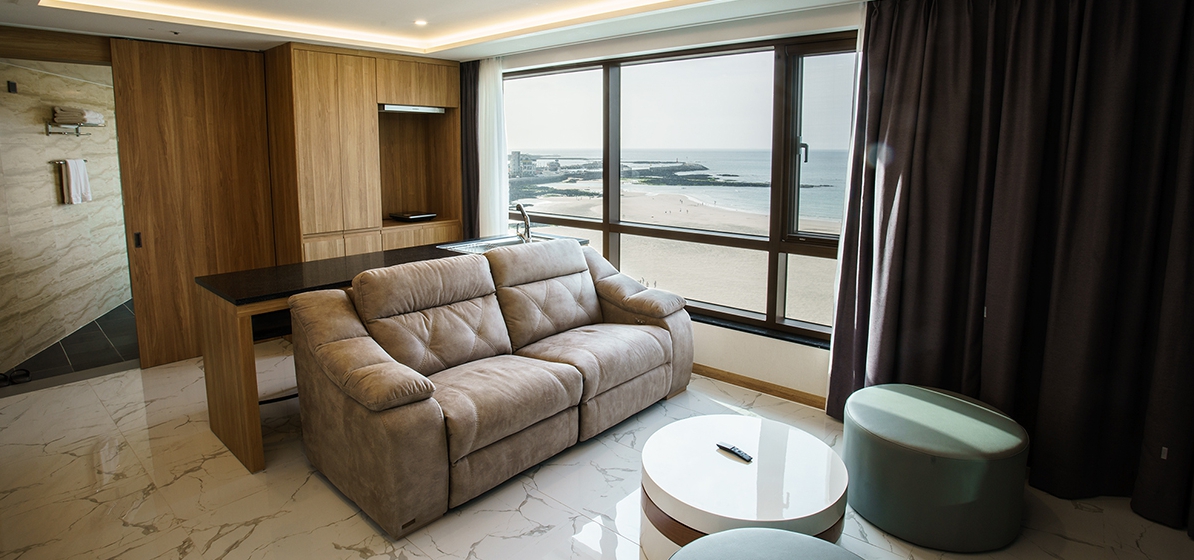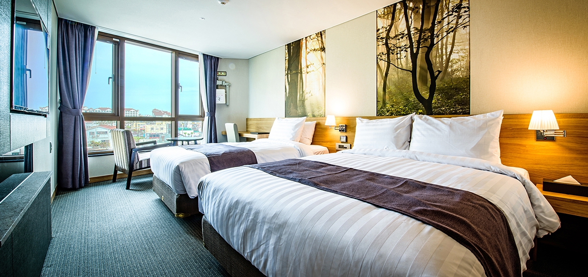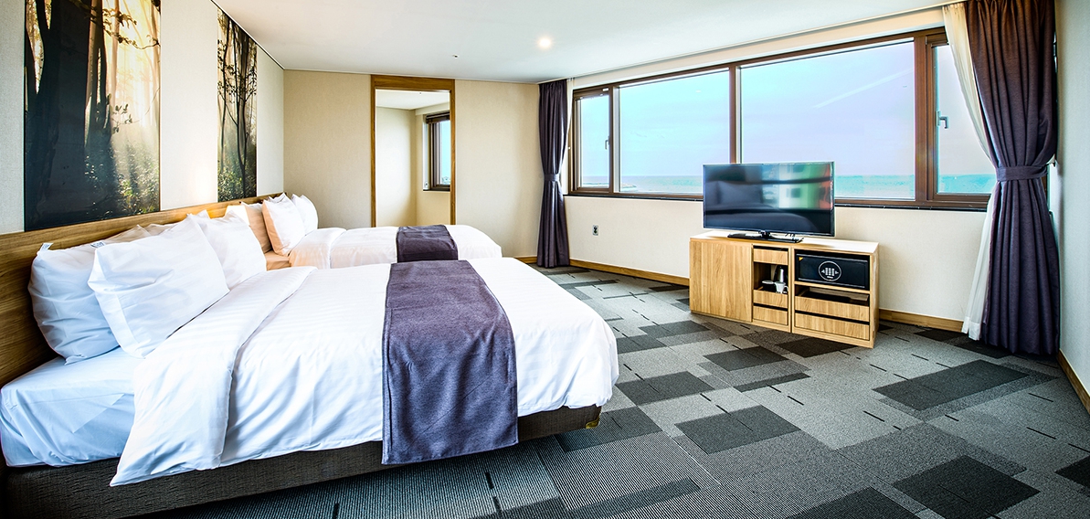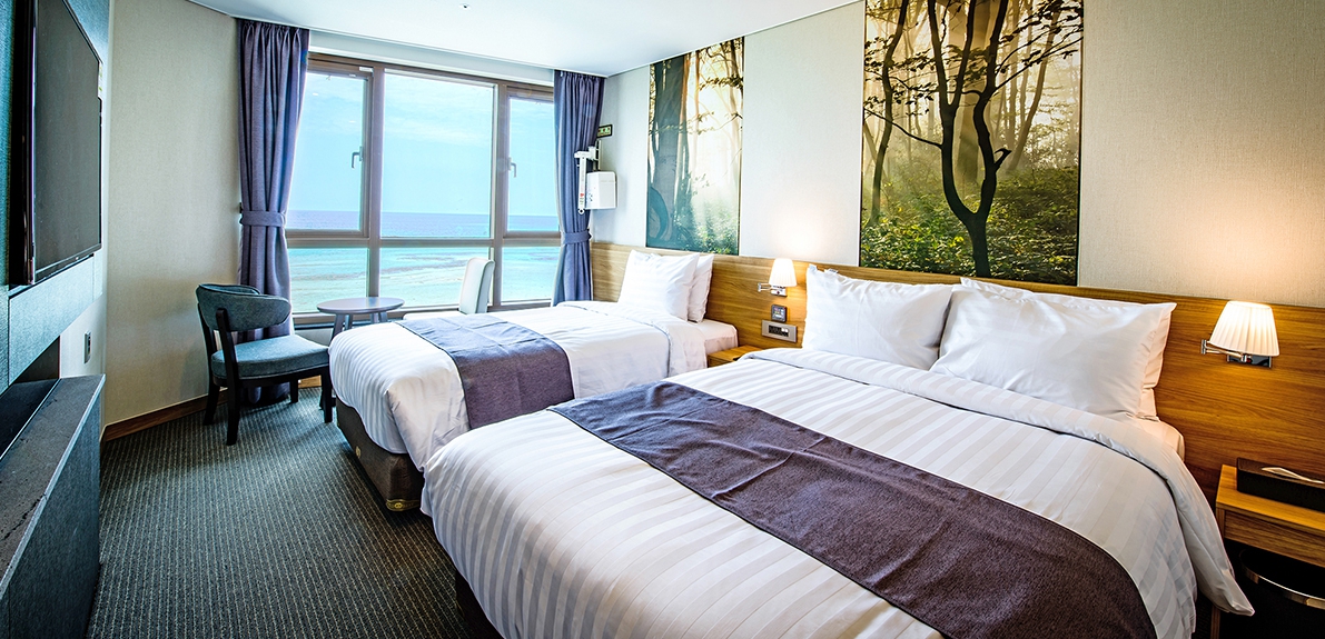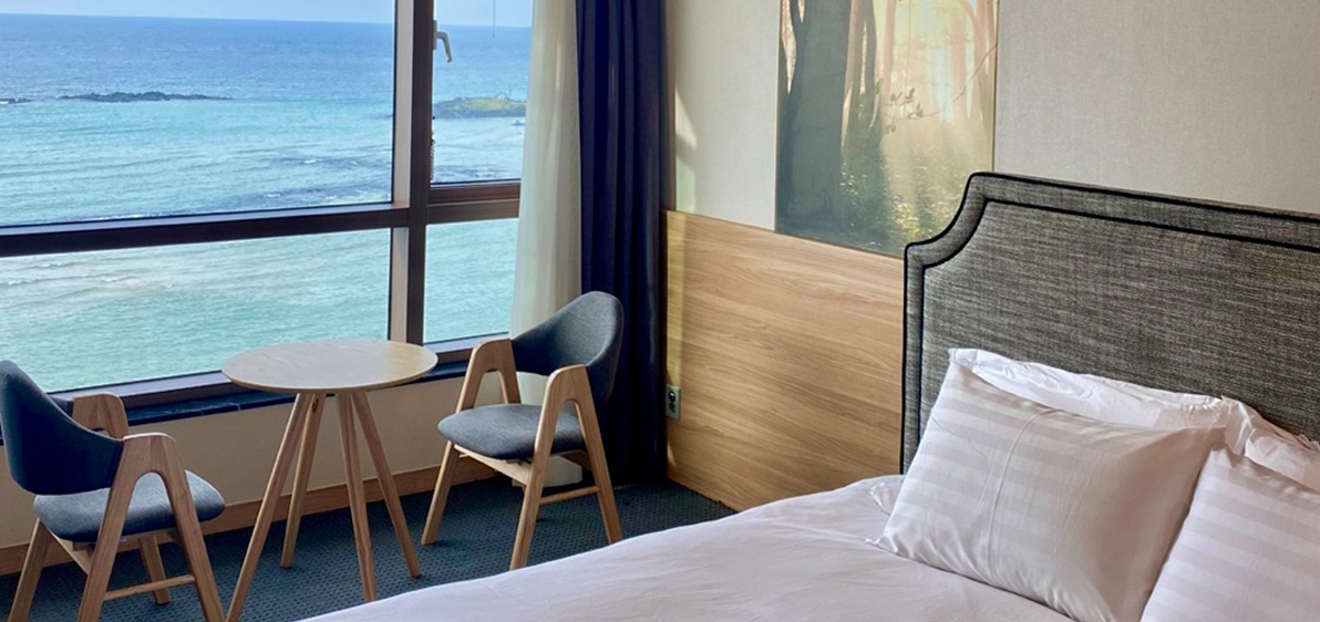 친환경 우수 자재를 사용한 감각적이고 안락한 분위기의 객실로 구성되어 있으며, 호텔 9층에 위치한 스카이라운지에서는 탁트인 해변조망과 함께 자쿠지에서의 편안한 시간을 즐기실 수 있습니다.