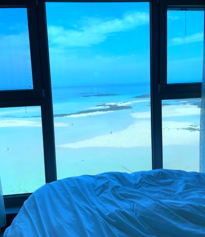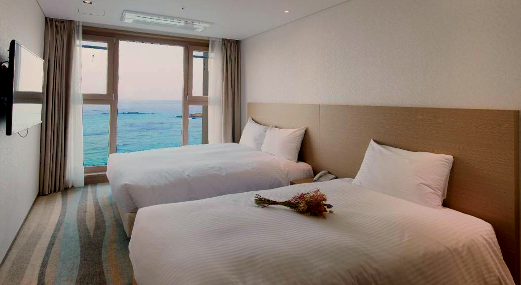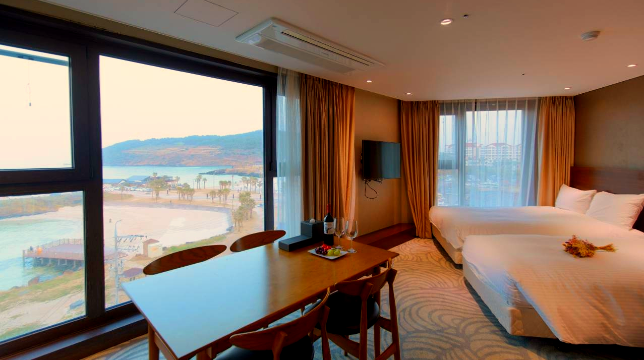 아이을 위해 침대 가드도 설치해 주시고 직원분들이 친절해요. 바다뷰로 예약했어야했는데 마을뷰로 예약해서 앞에 공사뷰였지만 멀리 한라산도 보이는거 같고 바로 앞에 해수욕장도 있고 근처에 식당이랑 빵집도 제법 있어서 즐거운 휴가를 보낼 수 있었어요.