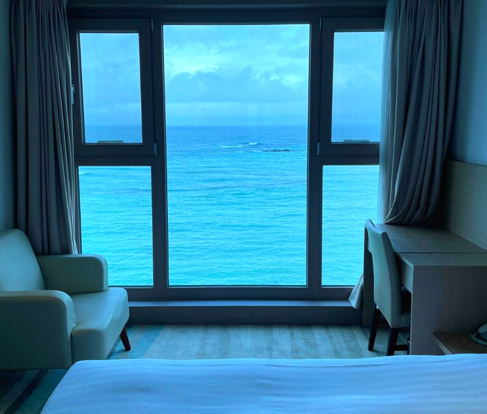 예전에도 여기 묵었을 때 잘해주셔서 언니와 여행중에 묵었는데 방도 업그레이드해주셔서 원래는 사이드오션뷰 였는데 전면 오션뷰인 방에 묵었는데 너무 좋았어요 바다가 너무 잘보이고 침대도 좋아서 푹 잤네요 프론트직원분 친절하시고 오션뷰가 진짜 끝내줍니다! 침대에 누워서도 바다가 보이는데 색이 이뻐서 물멍이 이런거구나 싶기도 합니다. 창문 개방도 가능해서 밤에 물치는 소리도 잔잔히 들리는데 감성숙소로 추천드려요.