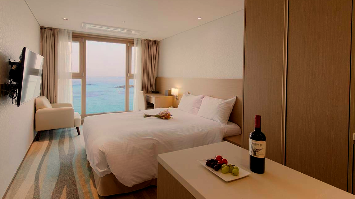 함덕 해변에 근접해있어 매일 아침 객실에서 에메랄드 빛의 제주 바다를 감상할 수 있습니다