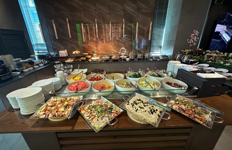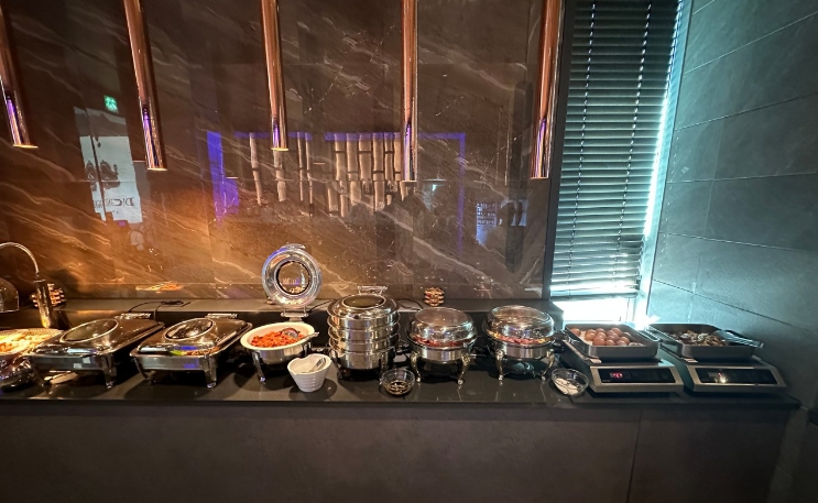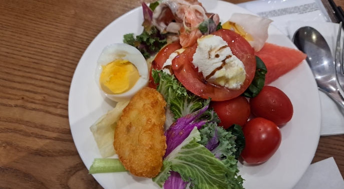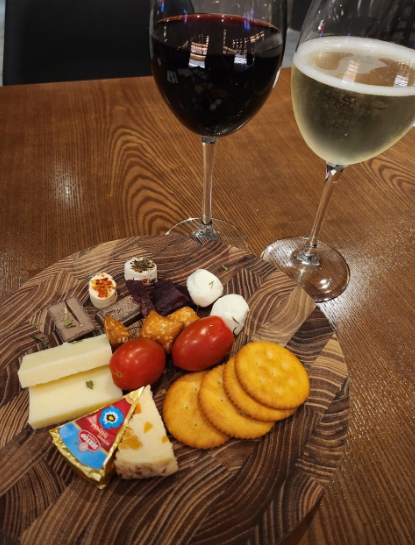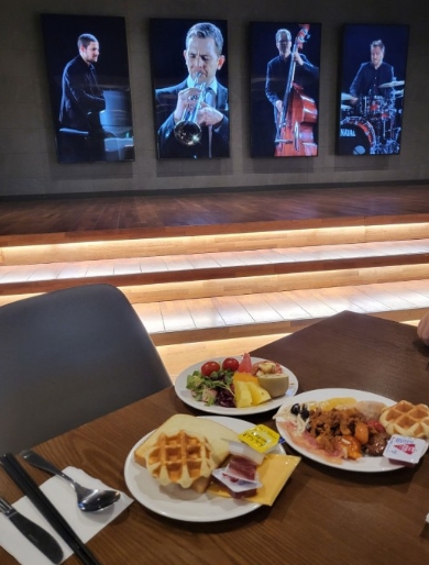 조식은 생각보다 맛있었어요. 특히 한식! 순두붓국과 밑반찬들이 모두 맛있었고 다른 음식들도 다 괜찮았습니다. 과일도 다양하고 신선하고 달콤했어요! 서비스로 나오는 와인과 치즈는 분위기 내기 괜찮은 정도? 근데 다음에 간다면 커피로 바꿔 먹을거에요..ㅎ