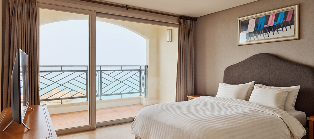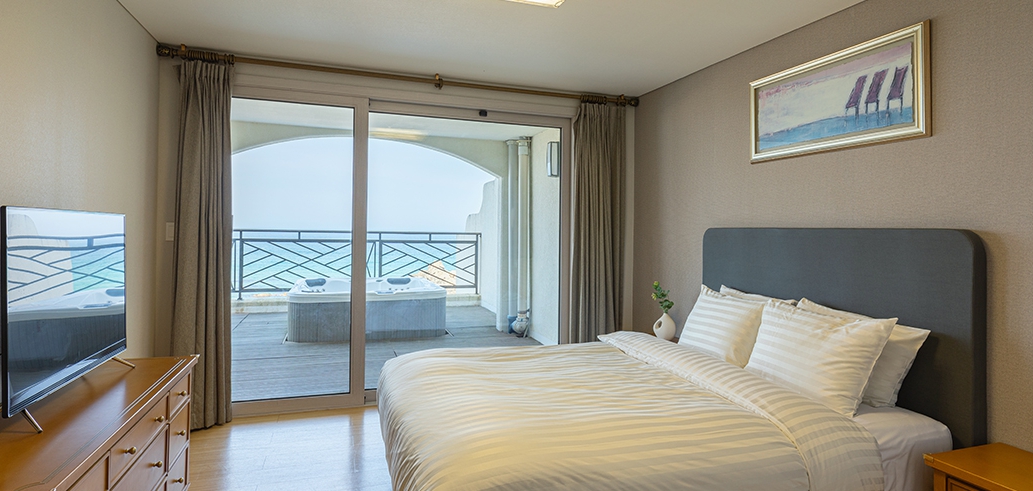 방은 오래전에 지은 건물 티가 방 안 곳곳에서 보여서 약간 실망이었지만 하루 숙박하기에는 나쁘지 않습니다. 일단 침대에서 테라스 넘어로 보이는 바다뷰가 정말 좋았구요. 바닷소리 갈매기 소리에 잠에 들고 잠을 깨니 이게 바로 호캉스구나 생각했습니다. 넓은 방에서 쾌적하게 잘 지냈습니다.