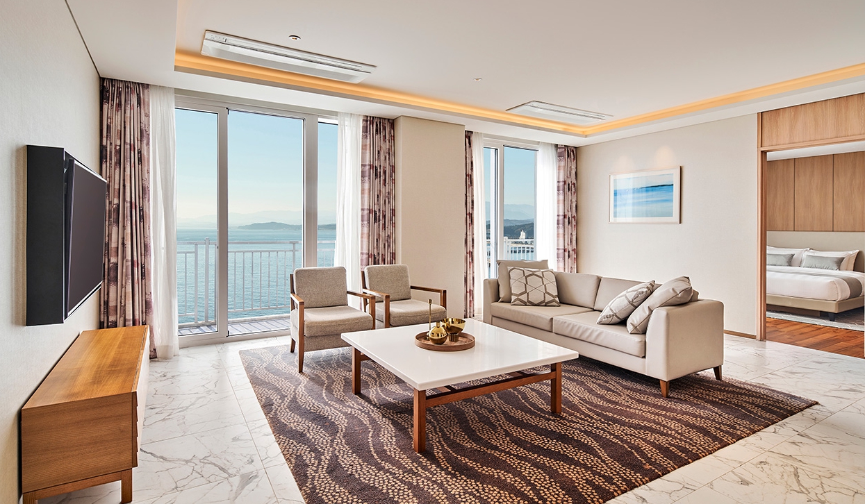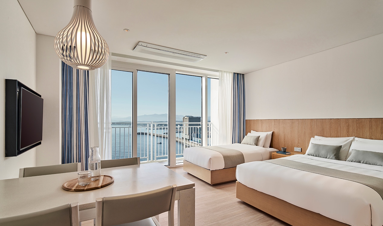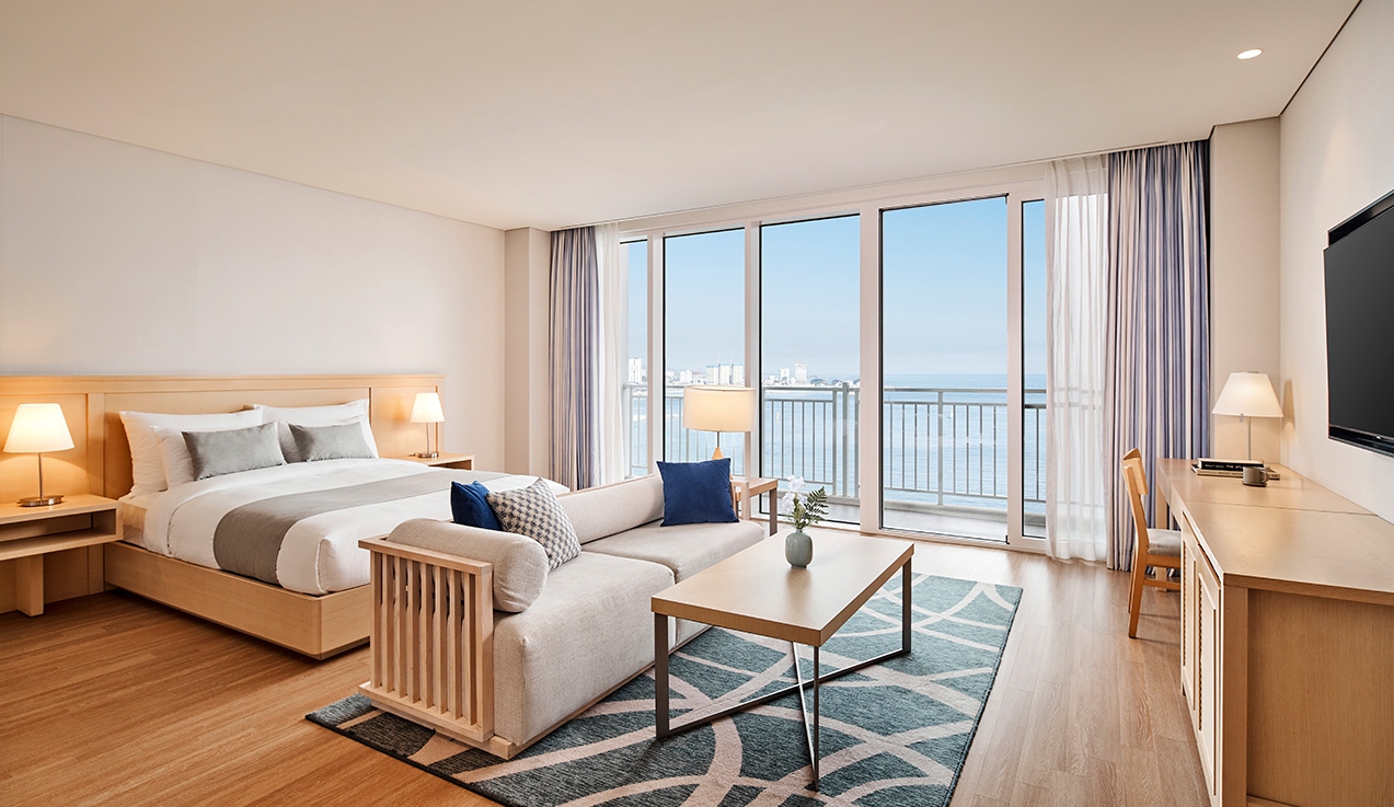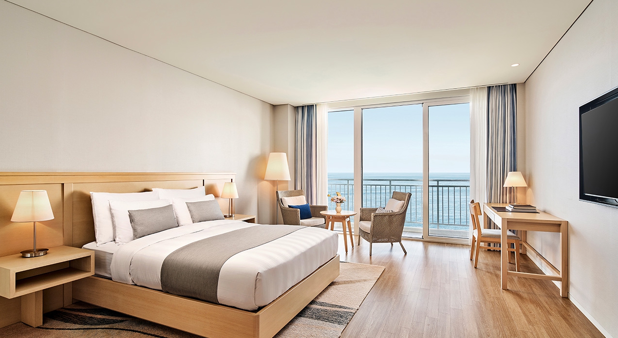 삼면 바다 조망을 갖추고 있어 모든 객실에서 동해안의 환상적인 에메랄드빛 바다를 느낄 수 있습니다