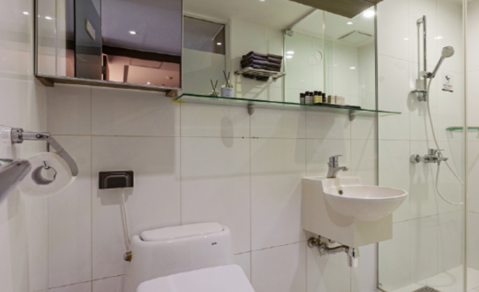 수건은 총 4장 제공되어 딱 맞게 사용했는데 더 필요하신 분들은 6층 프론트에 가셔서 추가로 받으실 수 있으니 참고하시면 좋을 것 같아요 : ) 샤워부스가 다른 호텔들에 비해 조금 작은 편이라 머리 감을 때 벽면에 팔꿈치가 조금씩 데이는게 아쉬웠어요~ 연식이 오래되어서인지 타일에 금이 간 것도 조금씩 보였구요 그래도 이정도 연식에 비해 아직 깔끔하게 유지되고 있는 걸 보니 관리를 꼼꼼히 하시는 것 같네요 !