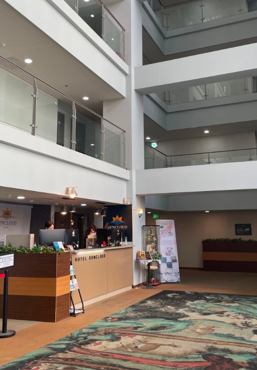 많은 리뷰에서 보셨듯이 썬클라우드 호텔은 객실로 이동하기위해 엘리베이터를 두 번 갈아타야하는 구조예요 지하에서 주차하신 후 4층으로 올라가서 엘리베이터를 갈아타고 6층(프론트)으로 다시 올라가 체크인을 해야해서 짐이 많은 분들은 힘드실 수도 있을 것 같아요 ㅠ ㅠ