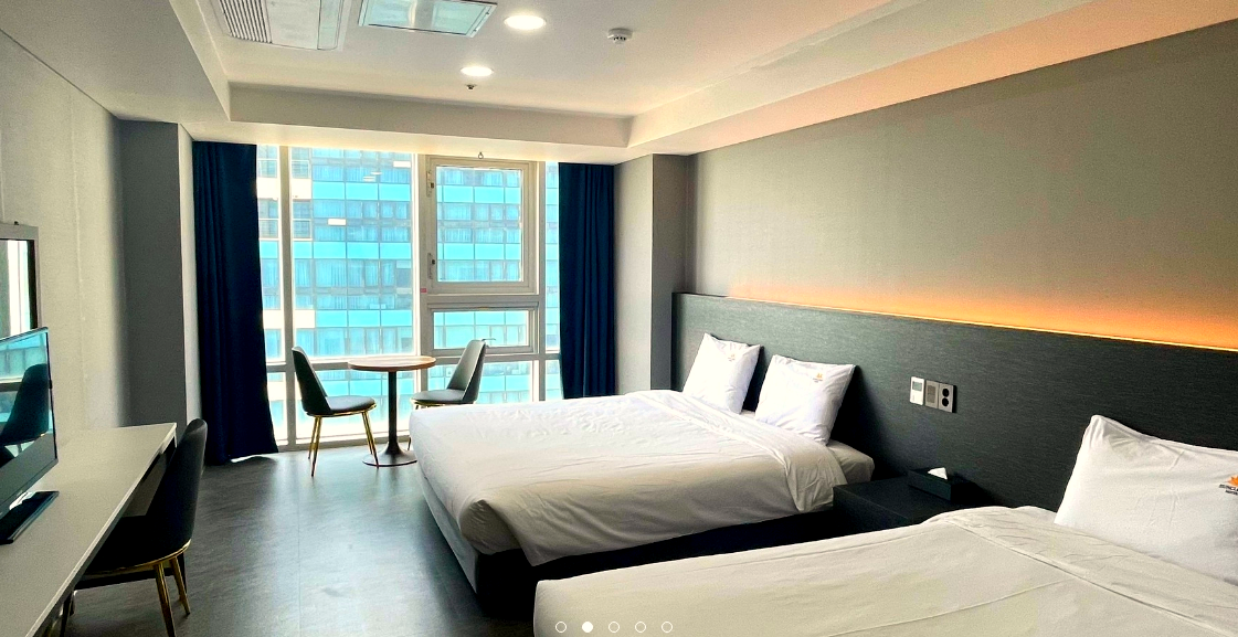 뷰는 생각보다 좋았어요 깨끗하게 정리되어 있고 침구류도 좋았습니다 바닷가는 횡단보도 건너면 바로 나오고 건물에 편의점도 두 군데나 있고 편했습니다 해운대 시장도 바로 근처입니다 가성비 좋은 호텔이었습니다 1층으로 내려오면 바로 번화가여서 안전하고 왠만한 가게들은 다 있어서 편리했어요 직원분도 친절하시구 일회용품은 구매해야합니다