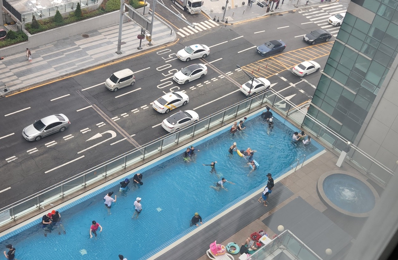 오래된 느낌은 들지만 깔끔깨끗하고 부모님이랑 다음에도 모시고 가고 싶어요 수영장도 좋습니다^^ 호텔 수영장 또한 야외에 해변가 방향으로 나있어서 해수욕이 꺼려지는 분이라면 더할나위없이 좋은 선택이 되지 않을까 싶습니다. 모자 꼭 챙기세요