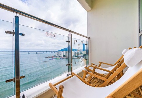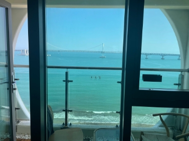 바다뷰가 정면은 아니었는데도 좋았고! 창문닫아 놓았더니 주변 소음도 크진않았습니다 정면뷰도 좋을듯해요