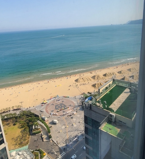 창문에서 보이는 해운대 바다는 측면이기는 했으나 즐기기에 나쁘지 않았습니다.